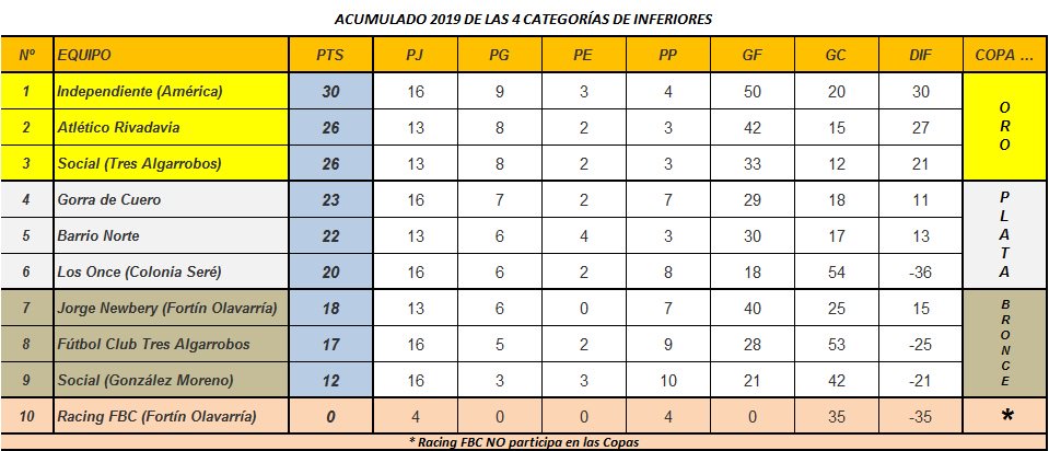 ASÍ ESTÁ LA TABLA ACUMULADA DE INFERIORES