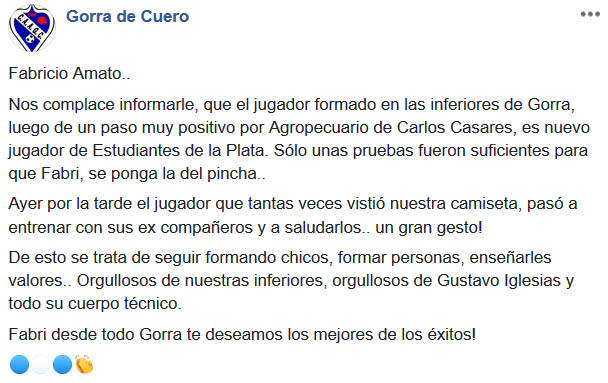 UN JUVENIL DE GORRA DE CUERO JUGARÁ EN ESTUDIANTES DE LA PLATA